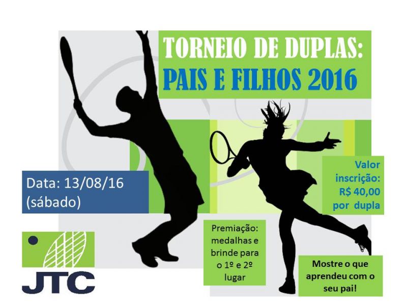 Inscreva-se até o dia 09/08 no torneio de duplas de tênis: "Pais e Filhos" do JTC!